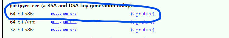 우선 해당( https://www.chiark.greenend.org.uk/~sgtatham/putty/latest.html ) 로 접속 하신 후 puttygen.exe 파일을 찾아서 설치해줍니다. 대부분 최상단에 있는 링크 입니다.