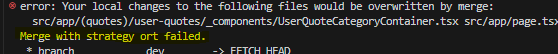 - 이슈 관련 커뮤니티(스택오버 플로우): https://stackoverflow.com/questions/75673699/how-to-fix-the-problem-merge-with-strategy-ort-failed