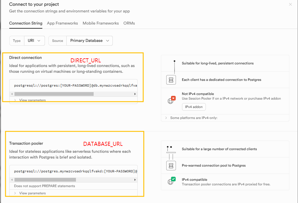 DIRECT_URL="postgresql://postgres.mynwzcvoadrkqqlfvakd:[DB_PASSWORD]@aws-0-ap-northeast-2.pooler.supabase.com:5432/postgres"