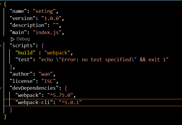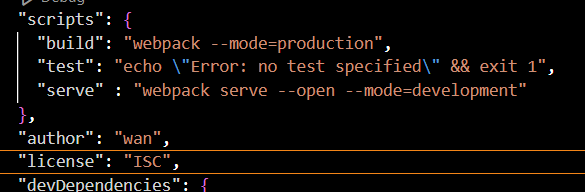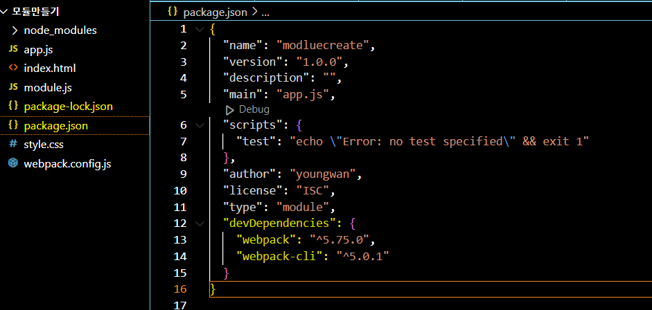 4. package.json 의 script 속성에 웹팩 실행 빌드 명령어 만들기