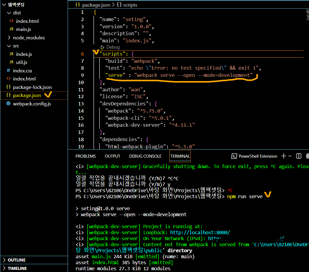 5. [터미널] - npm run build 입력해서 웹팩 실행하기